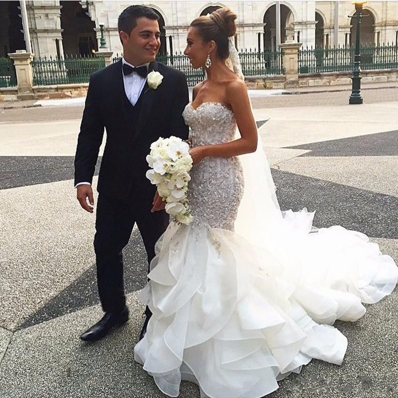 Mermaid Wedding Dresses With Bling And Ruffles - Luxury Bling Bling Mermaid Wedding Dress Jeweled Strapless ... : This elegant mermaid wedding dress in pale shade of purple that blossoms from afar is visually pleasing.. Mermaid wedding dresses are designed to follow the curves of the body to a point below the hips before flaring out again, sometimes with a profusion of ruffles or tulle. Where you pay attention to select a flattering hairstyle and accessories for your wedding day; Browse through thousands of photos of wedding dresses. Mermaid fit & flare wedding dresses via sofie house. Wed dress 2019 mermaid wedding dresses beading crystal bridal plus size dress wed bling mermaid wedding dress trumpet court looking for something more?